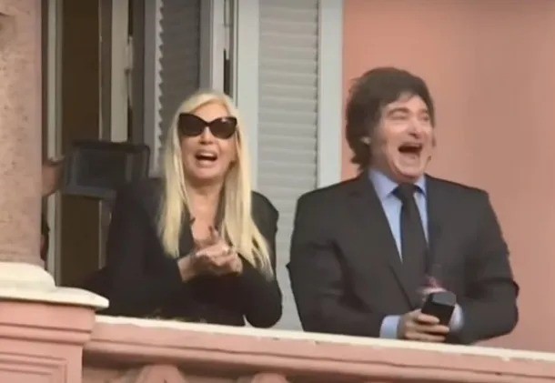 En un video de Susana junto a Milei en el balcón, que se viralizó rápidamente en redes sociales, se puede observar a ambos contentos, alegres y saludando como si abajo hubiese una multitud.