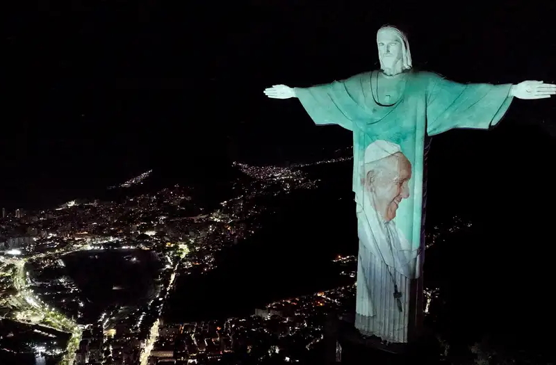 La icónica estatua del Cristo Redentor en Río de Janeiro mostró una proyección de imágenes del Papa Francisco junto con mensajes de apoyo en varios idiomas en las ultimas horas. El Vaticano anunció que el Papa Francisco, de 88 años y se encuenta hospitalizado con neumonía bilateral durante 14 días