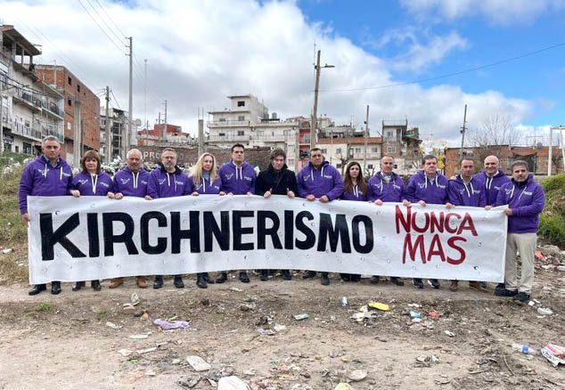 La imagen fue tomada en Villa Celina, La Matanza, en un terreno baldío repleto de basura junto a un polémico cartel con la frase “Kirchnerismo Nunca Más”, en la que centrará el eje de la campaña política.