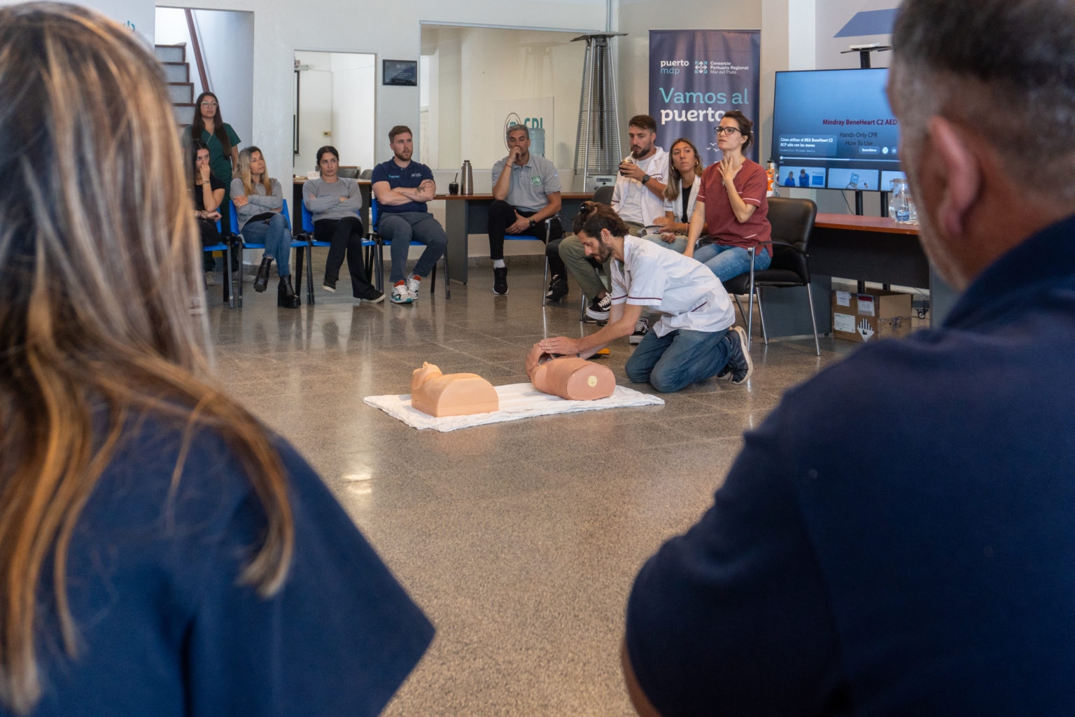 «Durante el mes de febrero vamos a generar, en articulación con los organismos de salud de la Provincia de Buenos Aires en General Pueyrredon, nuevas capacitaciones de RCP para que los trabajadores tanto portuarios como del Consorcio puedan adquirir las herramientas necesarias para asistir ante una emergencia», afirmó el presidente del Consorcio Portuario Regional Mar del Plata, Marcos Gutiérrez.
