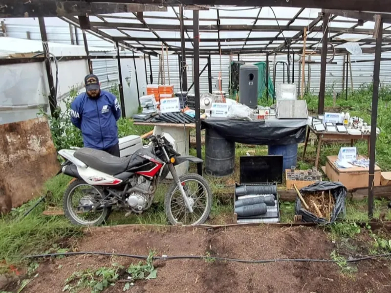 También, durante el operativo se incautó una moto, documentación de interés para la causa y distintos elementos que se utilizaron para montar un invernadero, como sensores de temperatura y humedad, una lámpara de calor para el exterior, un aire acondicionado y luminarias, entre otros.