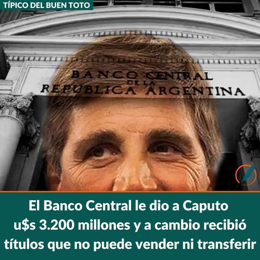 En una nota publicada en Ámbito Financiero, el periodista y economista Julián Guarino explicó: “Para que se entienda, los dólares de las reservas de la entidad financiera pasarán al Tesoro y el ministro Caputo, a cambio, les deja un bono hasta 2034 que no puede transferirse ni liquidarse. ¿Cambio de acreedor? Exacto”.