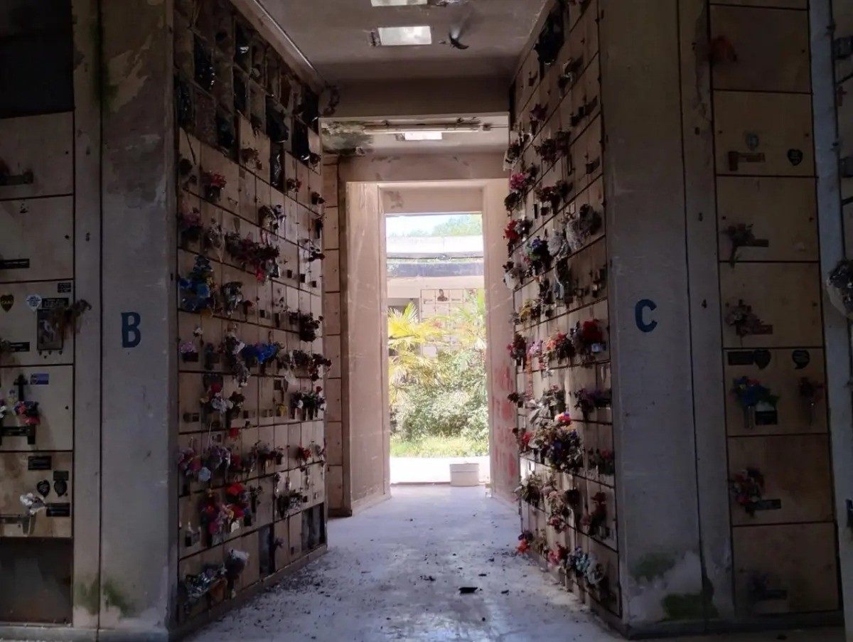 El abandono es evidente y alarmante. Se observan nichos rotos, ataúdes a la vista, palomas anidando en estructuras funerarias, techos deteriorados, luminarias ausentes, baños inutilizables, pisos cubiertos de excremento, desprendimientos de hormigón, columnas oxidadas, revoques caídos y filtraciones de agua. Un panorama indigno para quienes descansan allí y doloroso para quienes visitan a sus familiares.