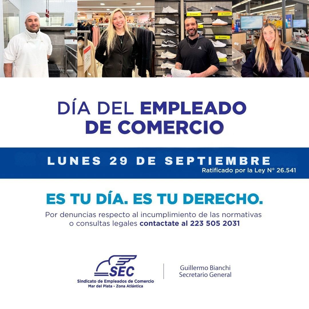 El Sindicato de Empleados de Comercio informa que este año la conmemoración del Día del Empleado de Comercio, establecida por la Ley 26.541, se trasladará del viernes 26 al lunes 29 de septiembre, en acuerdo con las cámaras empresarias del sector.
