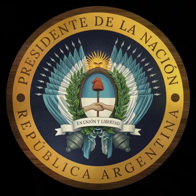- Se reiteran las frases “Presidente de la Nación” y “República Argentina” de la imagen anterior, sobre una estructura dorada