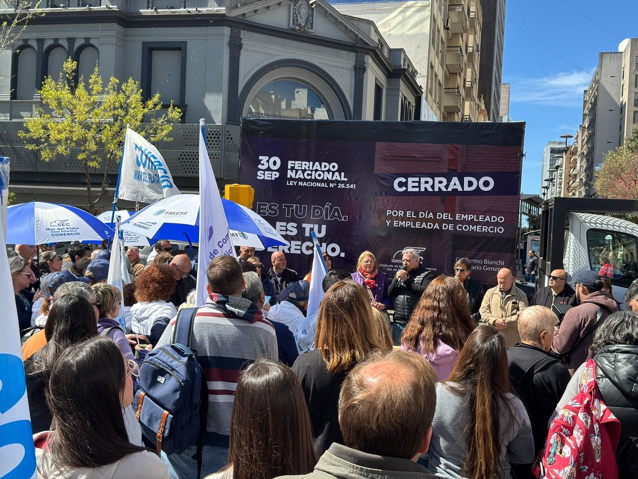 El Sindicato de Empleados de Comercio de Mar del Plata y Zona Atlántica llevó adelante este viernes al mediodía un acto de cierre en el marco