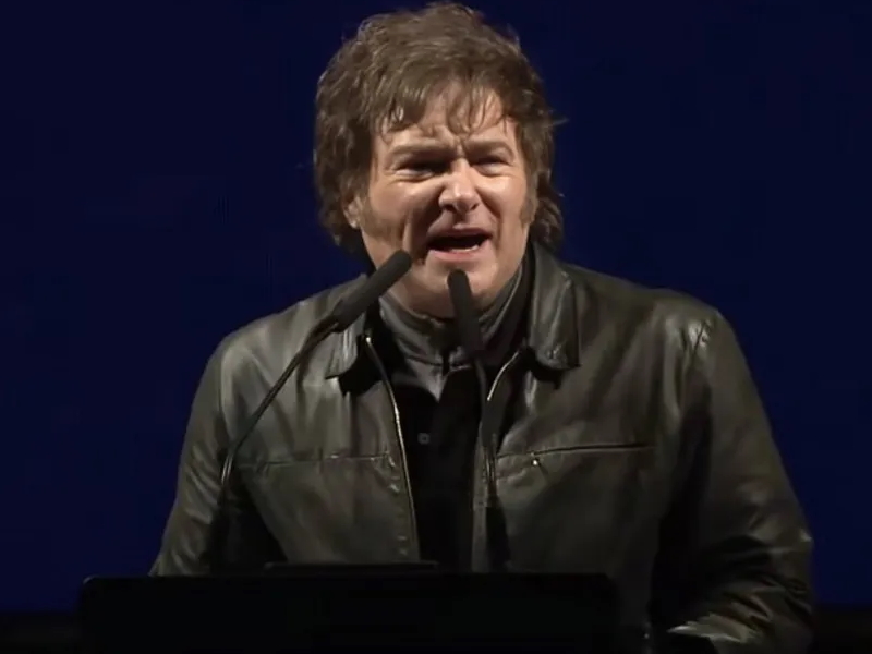 El presidente Javier Milei llegó al escenario del Parque Lezama como en sus últimos actos partidarios, al ritmo de La Renga y con insultos a la «casta política» y a los «periodistas ensobrados».