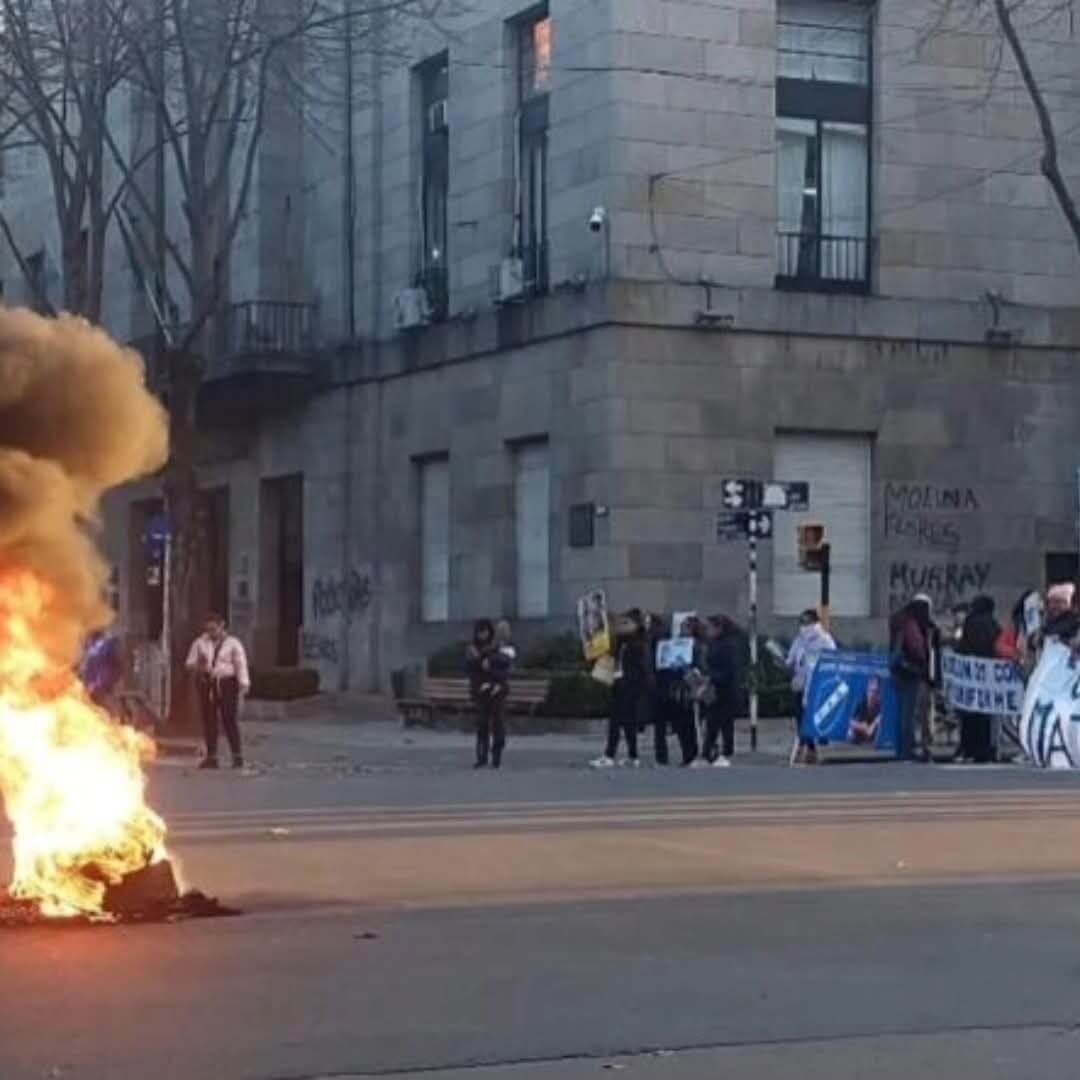 La movilización comenzó a las 16.00 en la intersección de avenida Luro y La Rioja, donde los manifestantes cortaron la circulación con neumáticos encendidos y contenedores atravesados sobre la calzada. Luego se trasladaron frente al Municipio, donde dejaron mensajes escritos en las puertas del edificio: “Matías Paredes”, “Policías asesinos”, “Montenegro ortiva”.