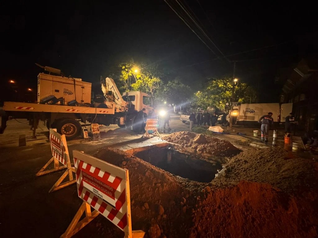 Tras varias horas de trabajo, el personal Obras Sanitarias logró cerca de la medianoche finalizar la reparación de un caño de impulsión que provocó cortes de agua en una amplia zona de Mar del Plata.