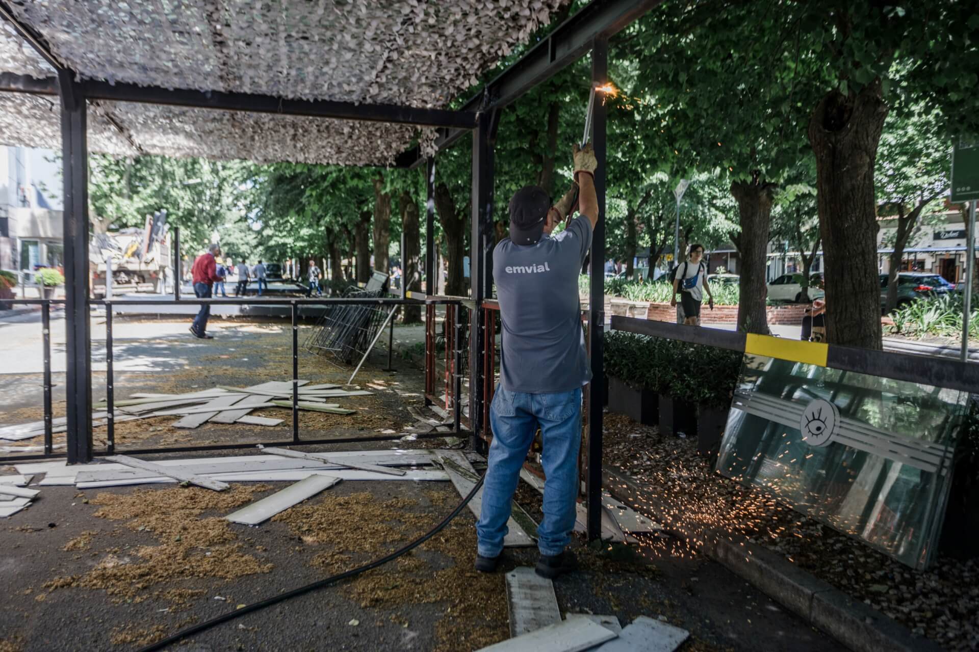 Defensa Civil y EMVIAL lideraron el desarme y retiro de los decks, mientras que la Patrulla Municipal colaboró coordinando el operativo. La Dirección de Tránsito organizó los cortes necesarios para la entrada de maquinarias y facilitó el desarrollo seguro de los trabajos.