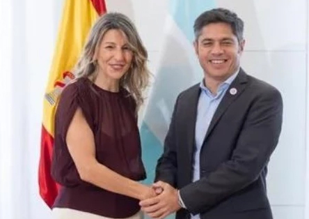 El gobernador Axel Kicillof, se reunió en Madrid con la vicepresidenta segunda de España, Yolanda Díaz, y luego encabezó un encuentro con empresarios para impulsar inversiones en la provincia, en el inicio de su gira oficial.