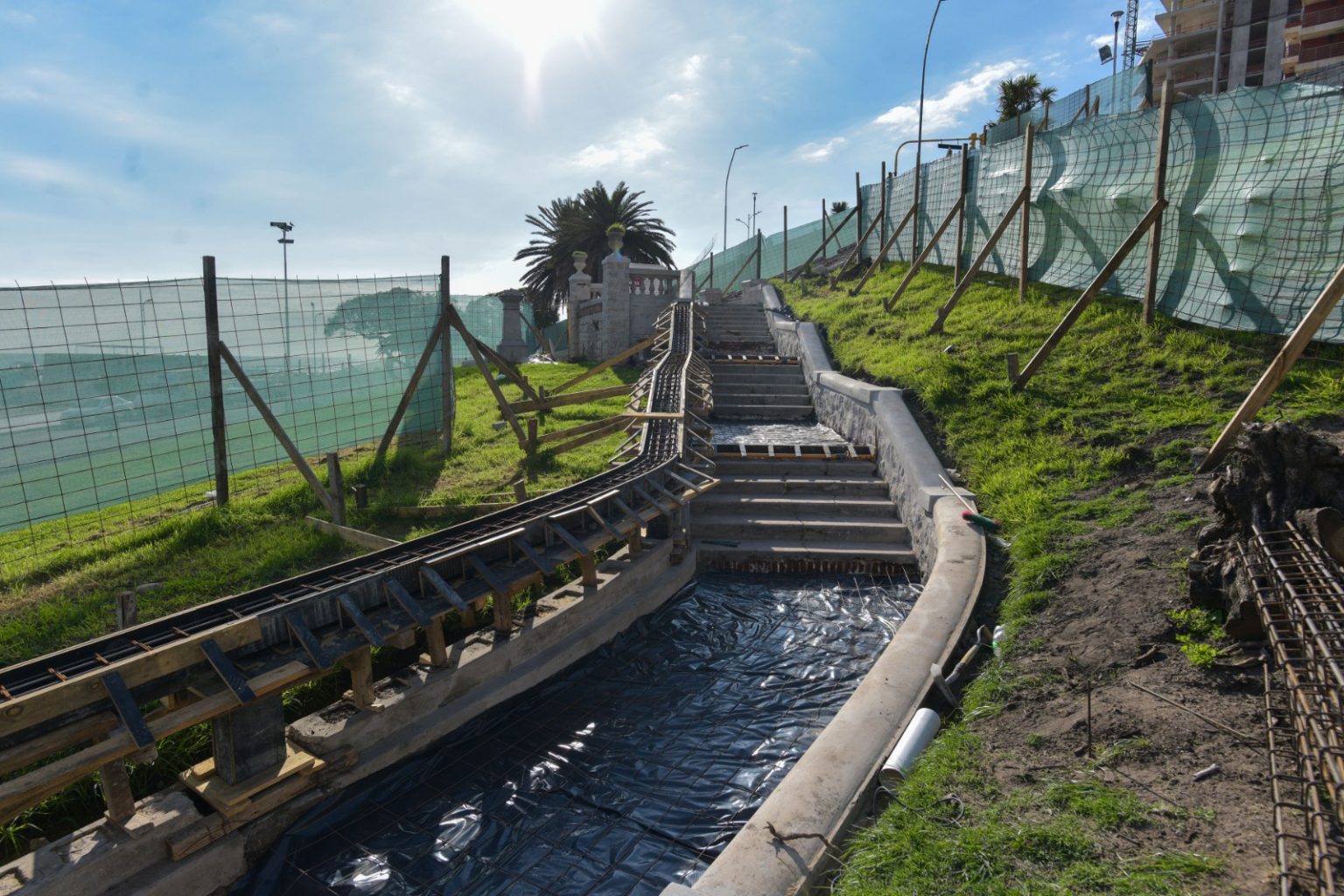 La Escalera Imperial, que desciende desde el Boulevard hasta la arena con un diseño de cuerpo central y dos brazos laterales, resistió al paso del tiempo, pero durante décadas sufrió abandono, roturas y deterioro por la falta de mantenimiento.