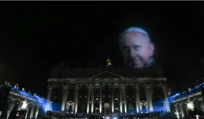 El rostro sonriente del Papa Francisco iluminó el cielo de Roma este sábado, en una imagen histórica formada por un enjambre de drones sobre la monumental plaza de San Pedro del Vaticano. La emotiva aparición fue el punto culminante de un evento sin precedentes por la fraternidad humana, que contó con la participación de estrellas internacionales como la cantante colombiana Karol G y el tenor italiano Andrea Bocelli.