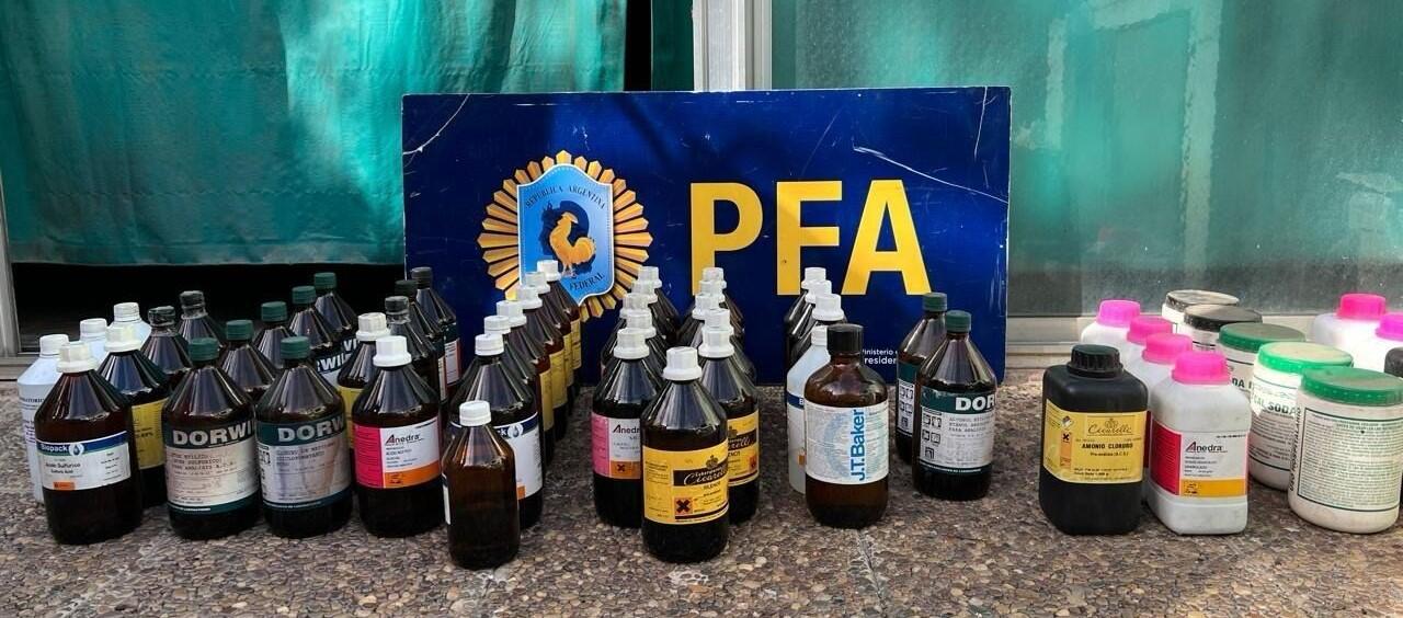 La Policía Federal Argentina, en cumplimiento de las estrictas directivas impartidas por el Ministerio de Seguridad de la Nación para combatir al narcotráfico, secuestró diversas sustancias utilizadas en la fabricación de estupefacientes, tras un allanamiento en la localidad de San Antonio de Padua, en la zona oeste del Conurbano Bonaerense. El domicilio pertenecía a un ex gerente de una empresa dedicada al rubro químico, investigado por el hecho.