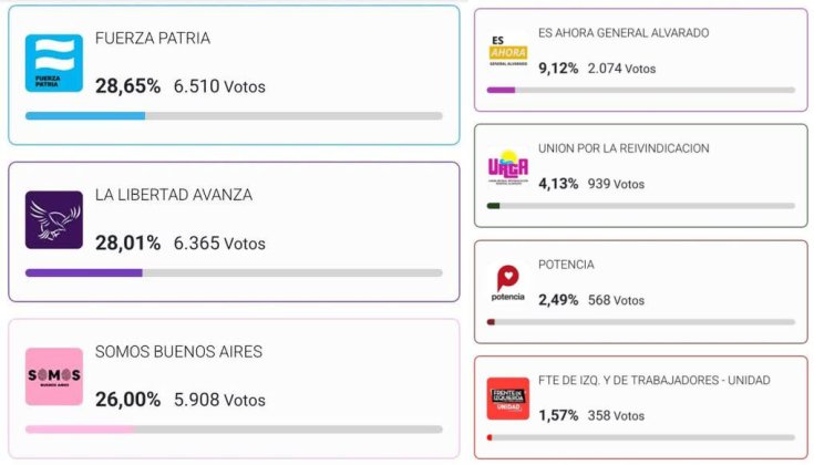 Se desarrolló con normalidad los comicios en el distrito de Gral. Alvarado. Triunfó el peronismo en el Gobierno Municipal (con cabecera en la ciudad de Miramar) por una mínima diferencia sobre la Libertad Avanza y el Radicalismo, transformándose la misma en una elección de tercios.