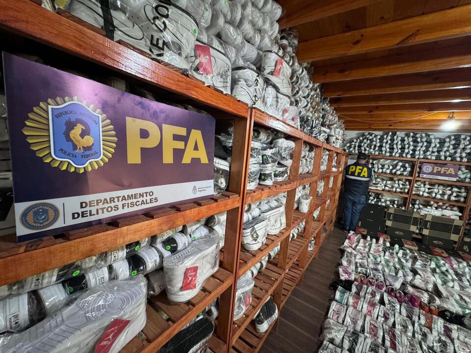 La Policía Federal Argentina (PFA), fuerza dependiente del Ministerio de Seguridad de la Nación secuestró gran cantidad de zapatillas de diferentes marcas apócrifas por un asuma millonaria, en la localidad bonaerense de Villa Martelli.