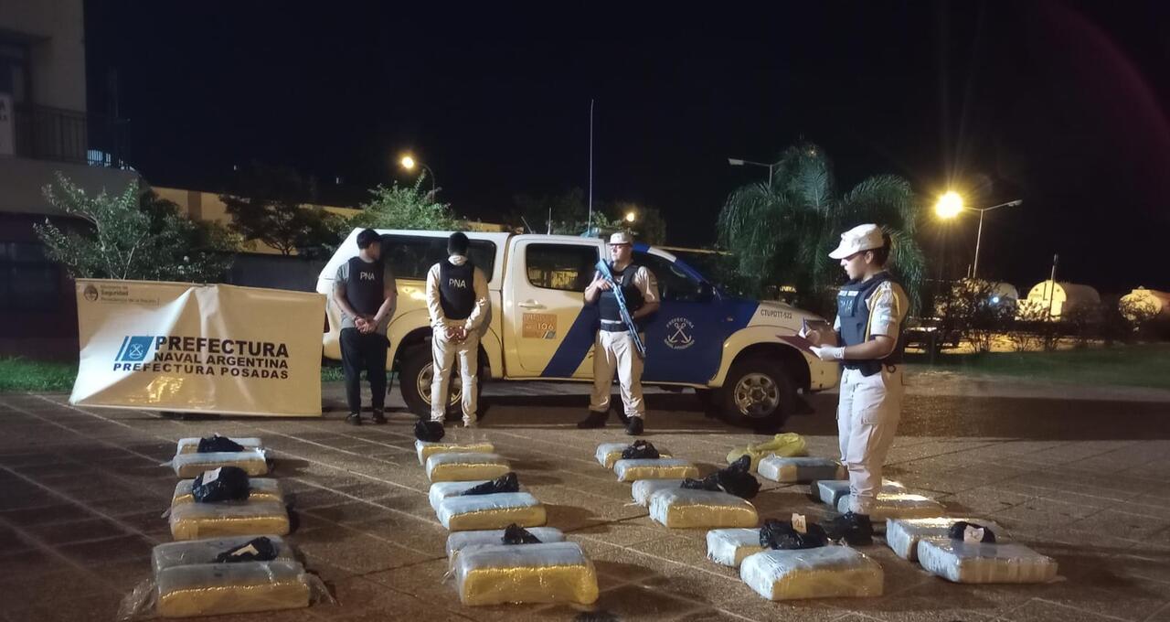 Inmediatamente los efectivos se dirigieron al lugar y lograron detener a dos hombres que, al momento de la requisa, trasladaban 24 panes de marihuana. Lo decomisado y los involucrados detenidos quedaron a disposición del Juzgado Federal de Posadas y la Fiscalía Federal Nº 2.
