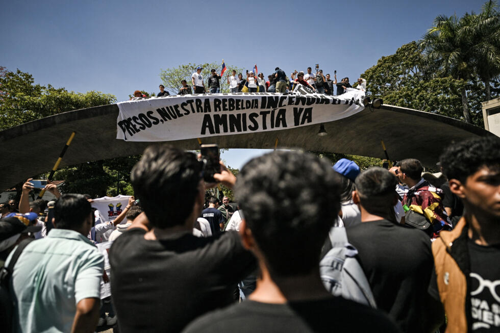 «Amnistía ya», se leía en una pancarta exhibida a la entrada de la UCV, la universidad más grande del país.
