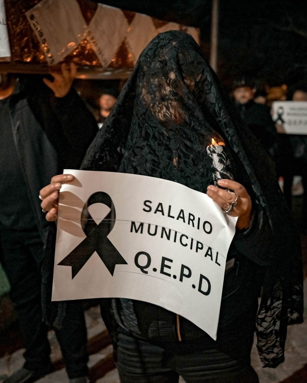 Vestidos de negro, con velas, carteles y un ataúd, trabajadores y trabajadoras de las distintas áreas municipales encabezaron este sábado -en pleno fin de semana largo en conmemoración de la muerte de Martín Miguel de Güemes- una procesión simbólica, a modo de “velatorio” del salario municipal.