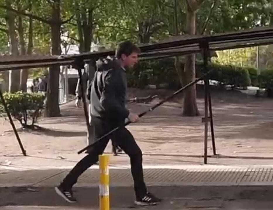 Un feriante de los puestos ubicados en la calle Mitre y la Peatonal San Martín golpeó con un fierro la estructura que utilizaban para vender artesanías en dicho lugar.