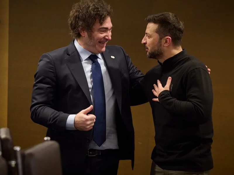«Quiero expresar, en nombre del pueblo argentino, nuestro máximo apoyo al pueblo de Ucrania, y a nuestro amigo Volodomir Zelenski, ya que como defensores de la idea de la libertad repudiamos cualquier forma de violencia», supo declarar el mandatario libertario.