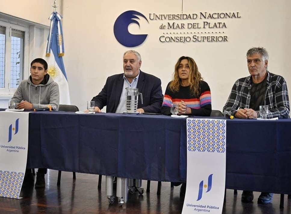 En el aula Silvia Filler del rectorado, se llevó adelante una conferencia de prensa de los gremios ADUM, APU, Unmdp y FUM de cara a la Marcha Nacional Universitaria que se llevará adelante mañana en todo el país.
