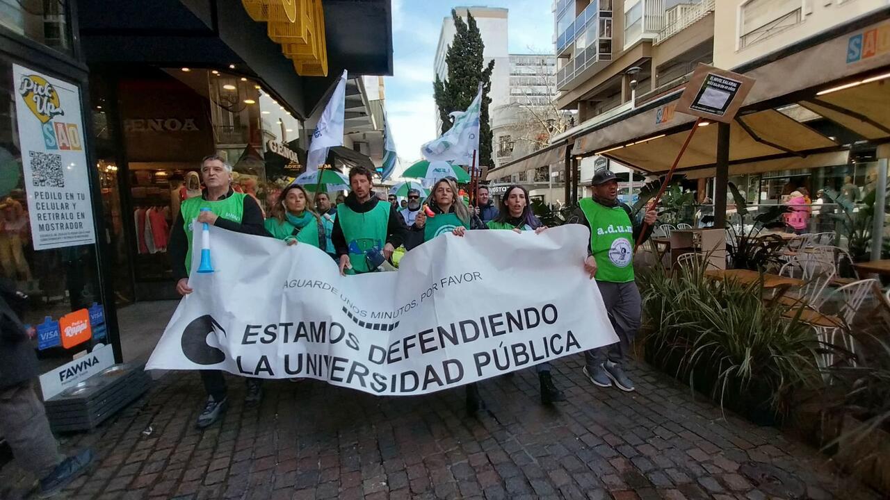 La comunidad universitaria se hizo oír hoy en Mar del Plata con un contundente «ruidazo» convocado por APU, ADUM y ATE. La concentración, que comenzó frente a la Catedral, reunió a trabajadores y docentes de la Universidad Nacional de Mar del Plata (Unmdp) que marcharon por la Peatonal en una muestra de unidad y protesta.