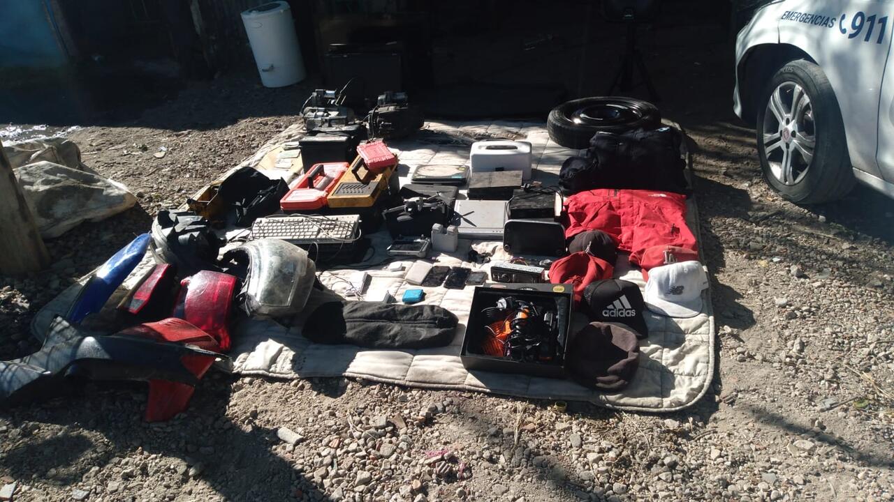 Durante las diligencias, los policías secuestraron autopartes de un Peugeot 208, un drone DJI Mini 3 con accesorios, municiones calibre .38 y 9 mm, dos chapas patente con pedido de secuestro activo, además de teléfonos celulares, consolas de videojuegos, notebooks, estéreos, baterías, herramientas y una boina que habría sido utilizada durante el robo.