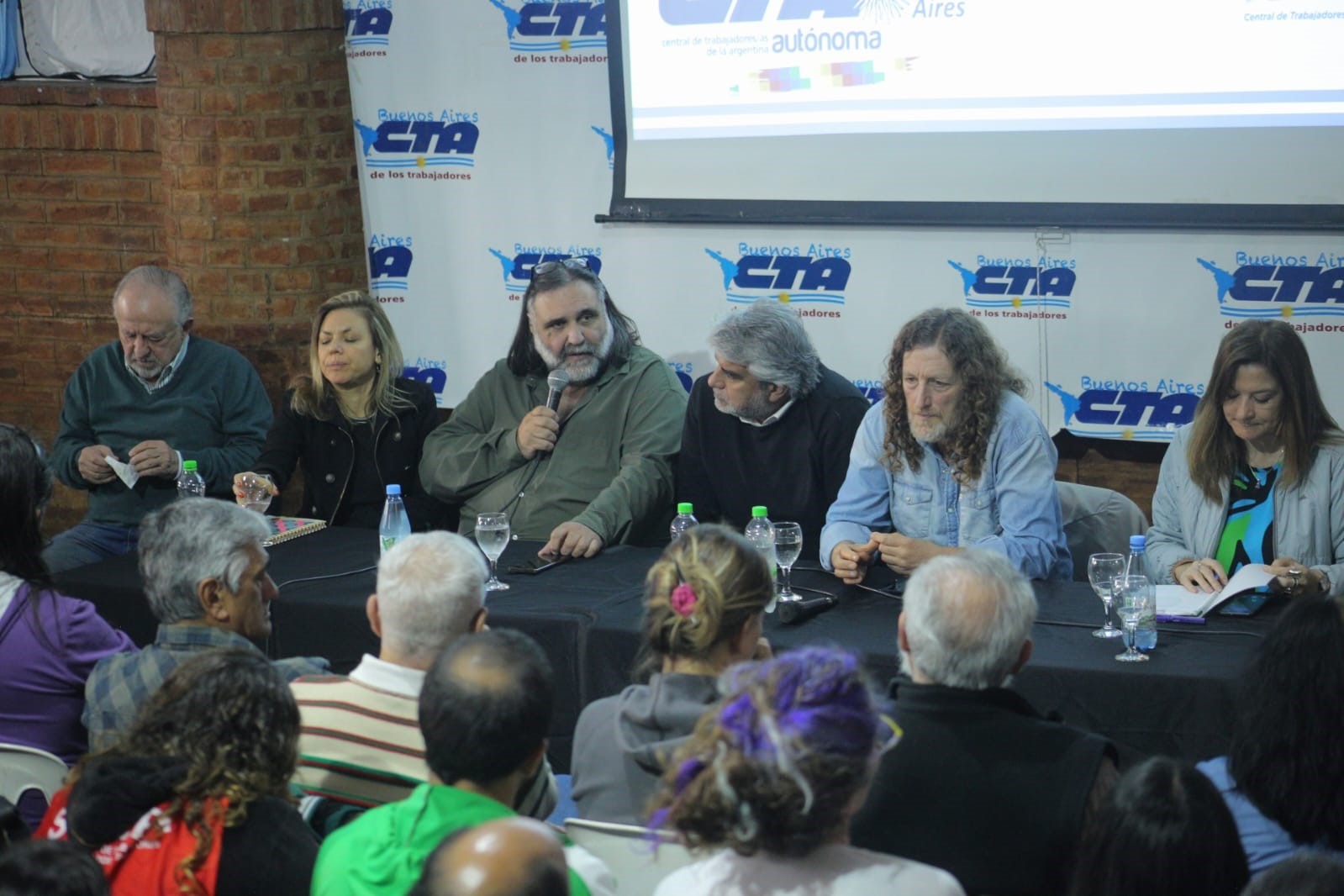 La asamblea fue presidida por el secretario General de la CTA Autónoma, Oscar de Isasi y el secretario General de la CTA de los Trabajadores, Roberto Baradel. Y acompañaban esa mesa, el secretario general a nivel nacional de la CTA de los trabajadores, el diputado Hugo Yasky, el secretario general de la CTA Autónoma Nacional, Hugo Godoy, el ministro de trabajo de la provincia de Buenos Aires, Walter Correa; la Ministra de Mujeres provincial, Estela Díaz, y la secretaria adjunta de la CTA Autónoma,Nadia Trincheros.