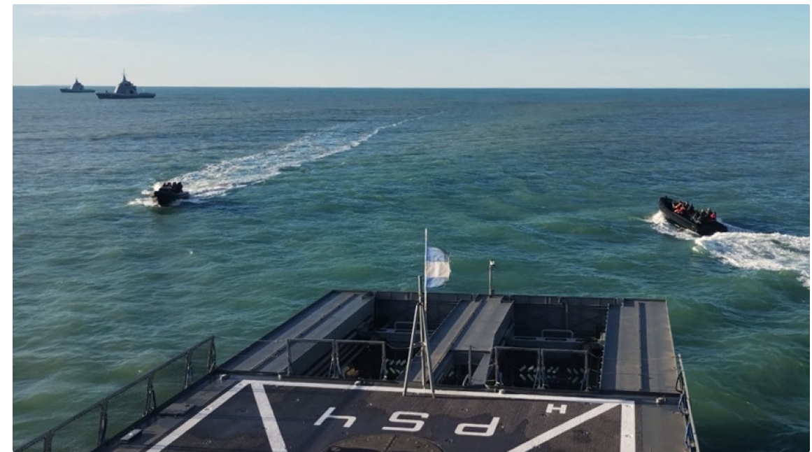 El encuentro de las unidades de la Armada Argentina se realizó en cercanías de la ciudad de Mar de la Plata. Durante la navegación, que se enmarca en el plan anual operativo, se efectuaron adiestramientos en roles específicos como lucha contra incendio con evacuación de heridos, control de averías y abandono de la Unidad.